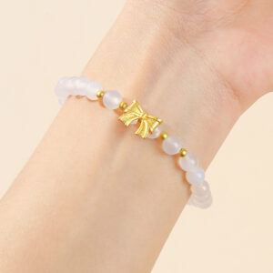 This white agate bow bracelet is truly beautiful! Each white agate is warm and moist like jade, with a light luster, with a small bow clasp, worn on the wrist looks very elegant. Whether it is daily commuting or dating wear are very lift temperament, girlfriends see immediately want the link!